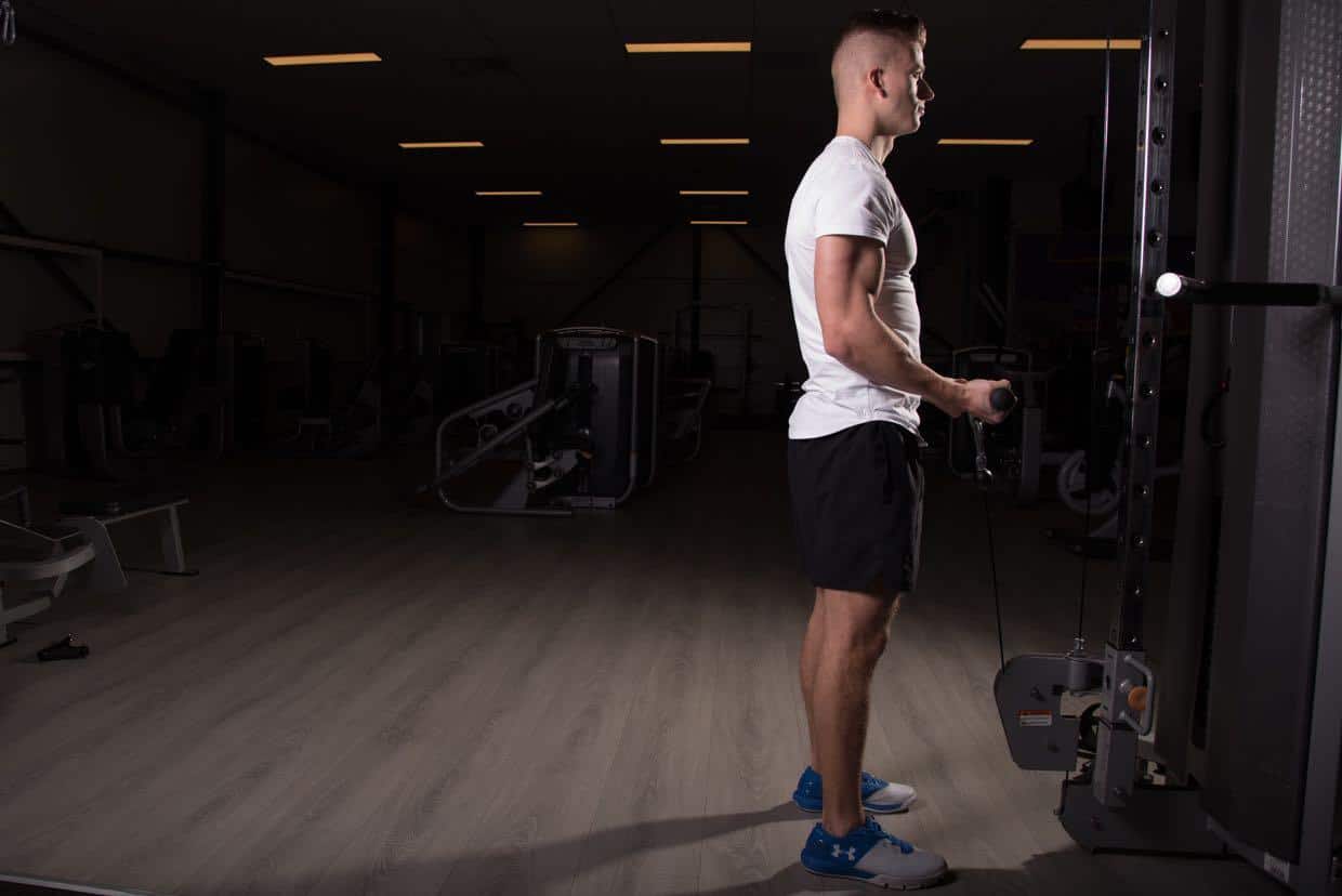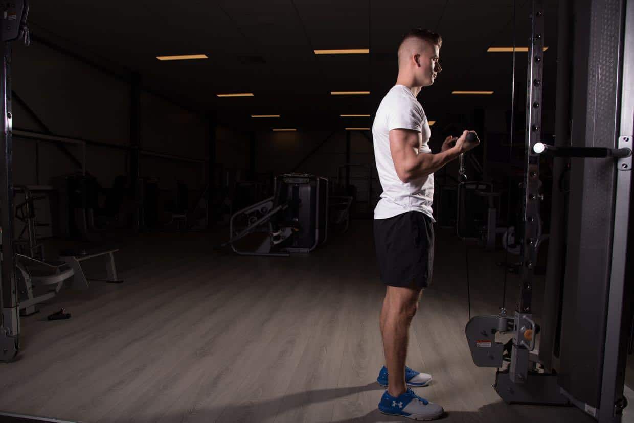 - Ga door tot vlak voor het moment dat je bovenin de beweging de spanning op de biceps kwijtraakt.