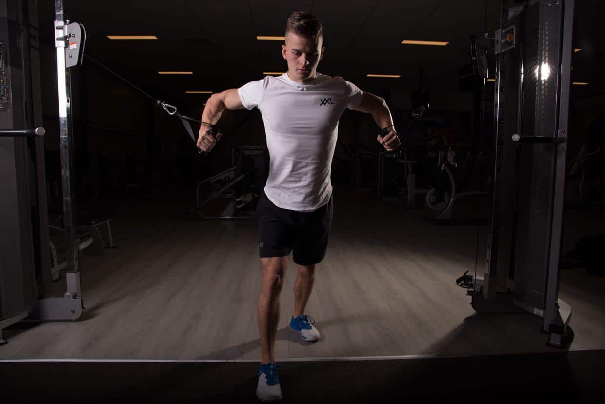Met kabels zorgt er dan ook voor dat je de oefening wat groter kunt maken. De handen kunnen elkaar voorin bovendien kruisen. Die variant wordt de cable crossover flyes genoemd.