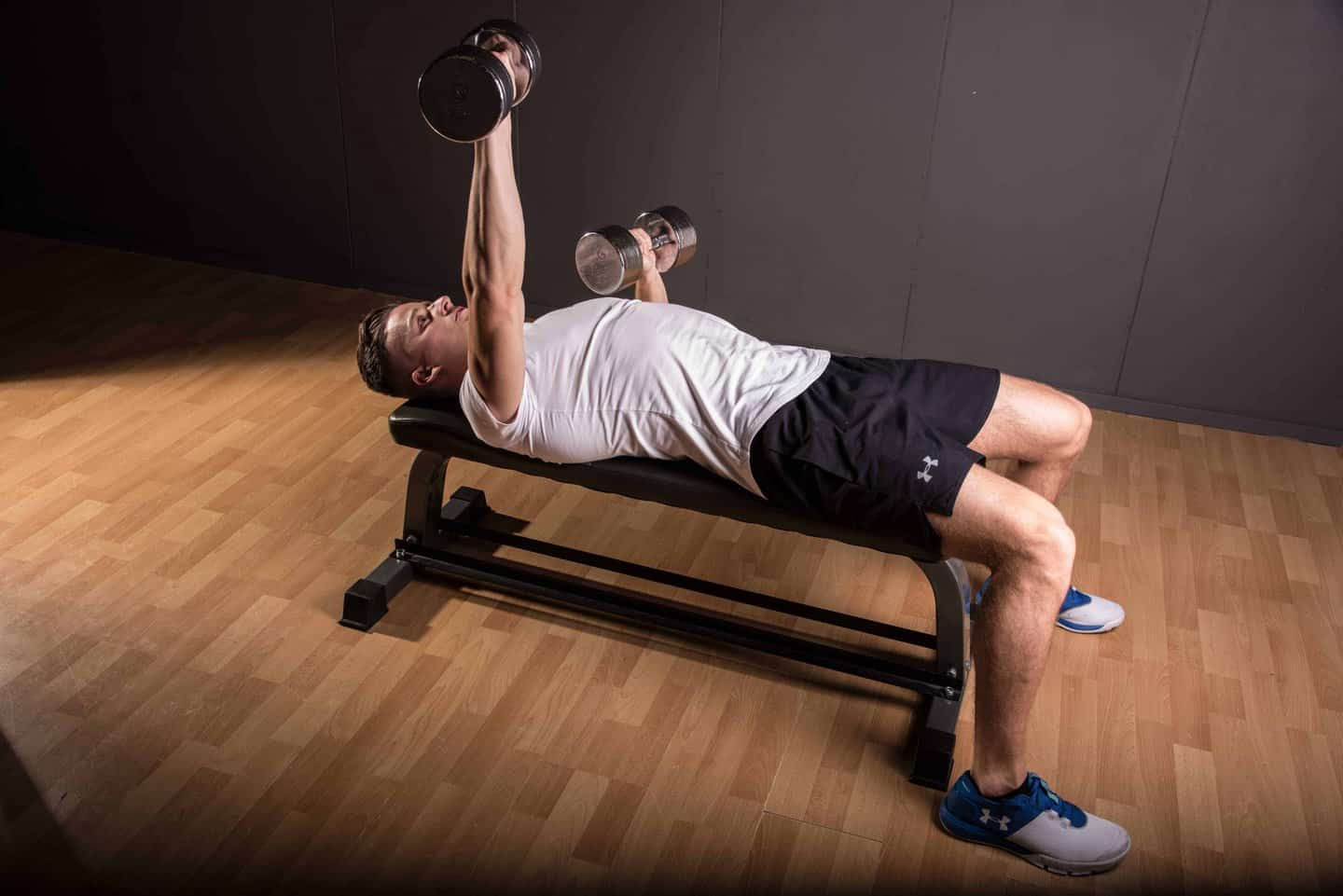 De bench press, ‘bankdrukken’, is een van de populairste oefeningen bij krachttraining. Het is een compound oefening die verschillende grote spiergroepen inzet. De borstspieren en voorkant van de schouderspieren worden ingezet om de bovenarm naar voren en binnen te trekken. De triceps worden ingezet om de armen te strekken. Spieren in de schouders, rug en onderrug werken mee om je lichaam te stabiliseren.