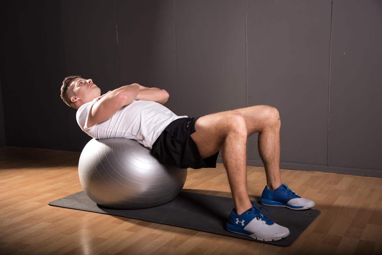 Op de stability ball verandert ook de range of motion (bewegingsbaan). De rug ligt niet plat op de vloer, maar naar achteren geheld door de ronding van de bol (hyperextensie). Je brengt deze dus vanuit holle positie naar een rechte positie en vervolgens door naar een bolle rug. Die eerste stap sla je bij normale Crunches over.