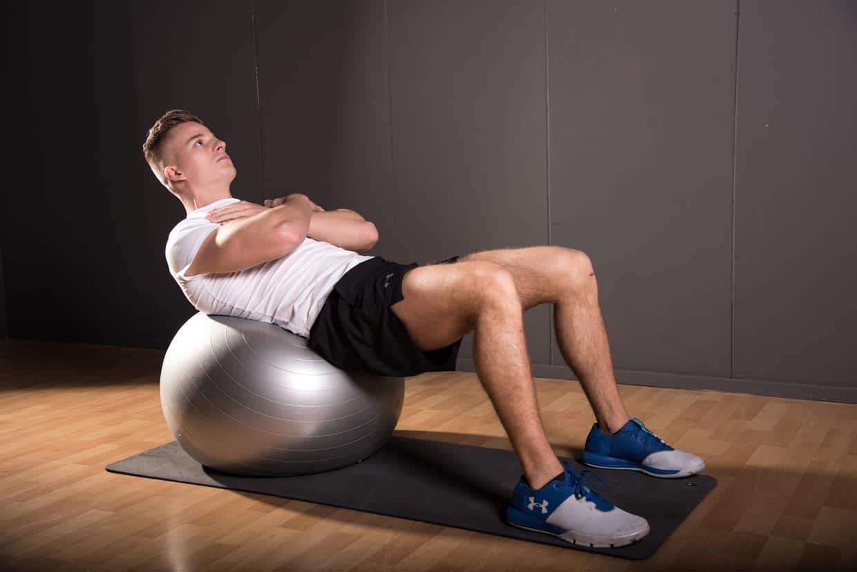 Op een stability ball ben je minder geneigd vanuit de heupen te kantelen en zal de rectus femoris dus ook minder worden ingezet in de actieve beweging.