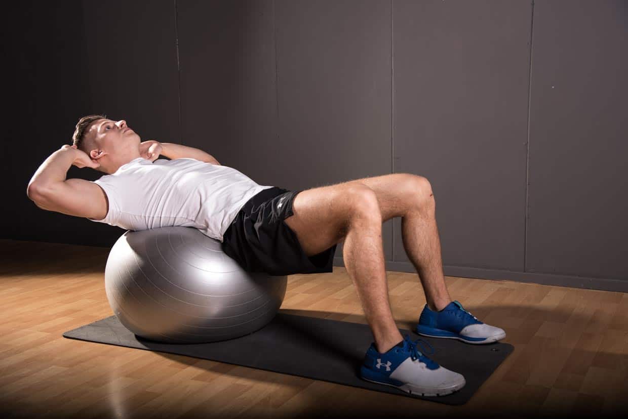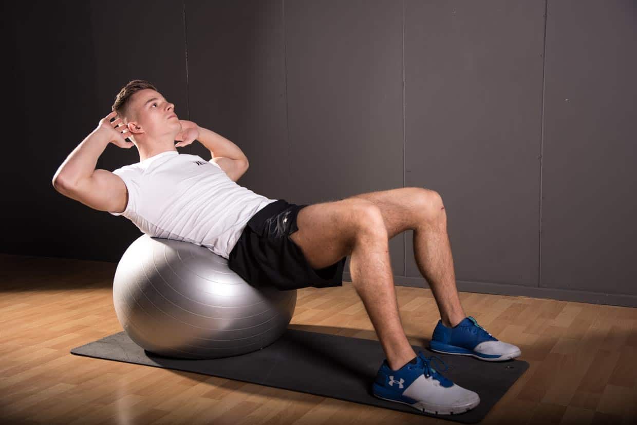 Op de stability ball verandert ook de range of motion (bewegingsbaan). De rug ligt niet plat op de vloer, maar naar achteren geheld door de ronding van de bol (hyperextensie). Je brengt deze dus vanuit holle positie naar een rechte positie en vervolgens door naar een bolle rug. Die eerste stap sla je bij normale Crunches over.