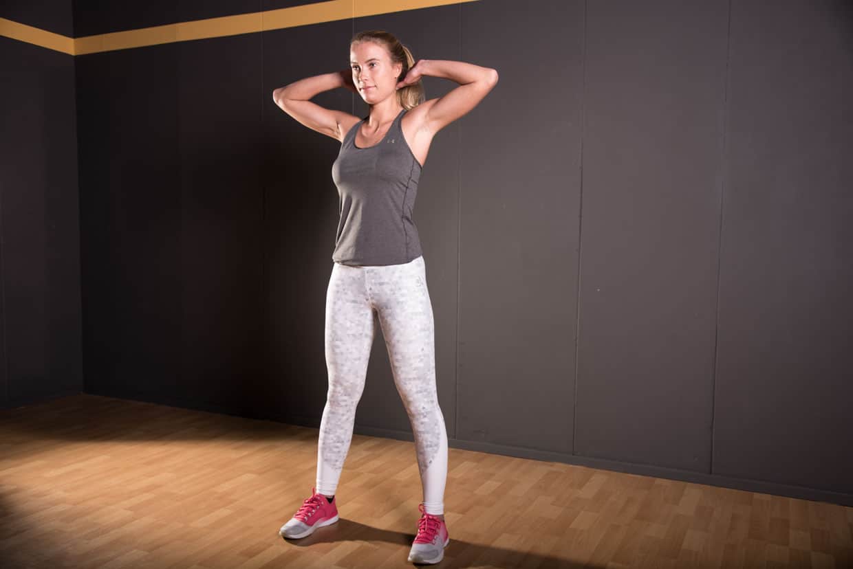 - Plaats de handen op het hoofd met de ellebogen naar buiten gericht.