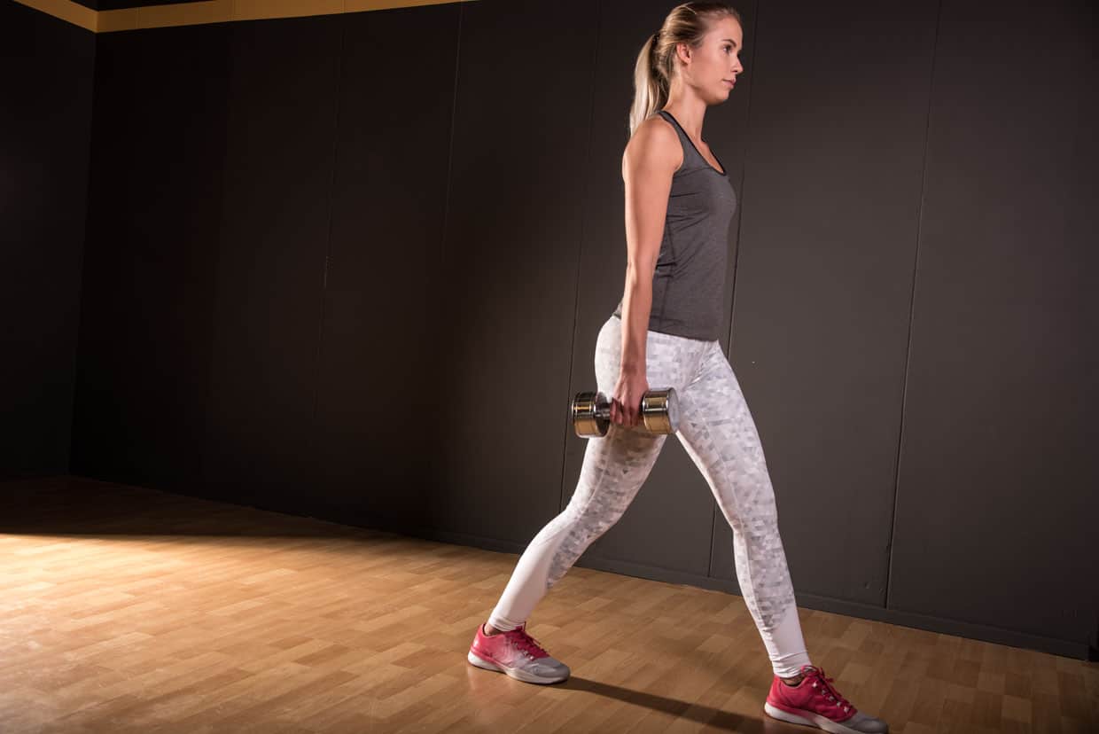 - De lunge kan de nodige oefening vereisen wat betreft uitvoering en balans. Bouw het dus rustig op wat het gewicht betreft en oefen eerst zonder extra gewicht.