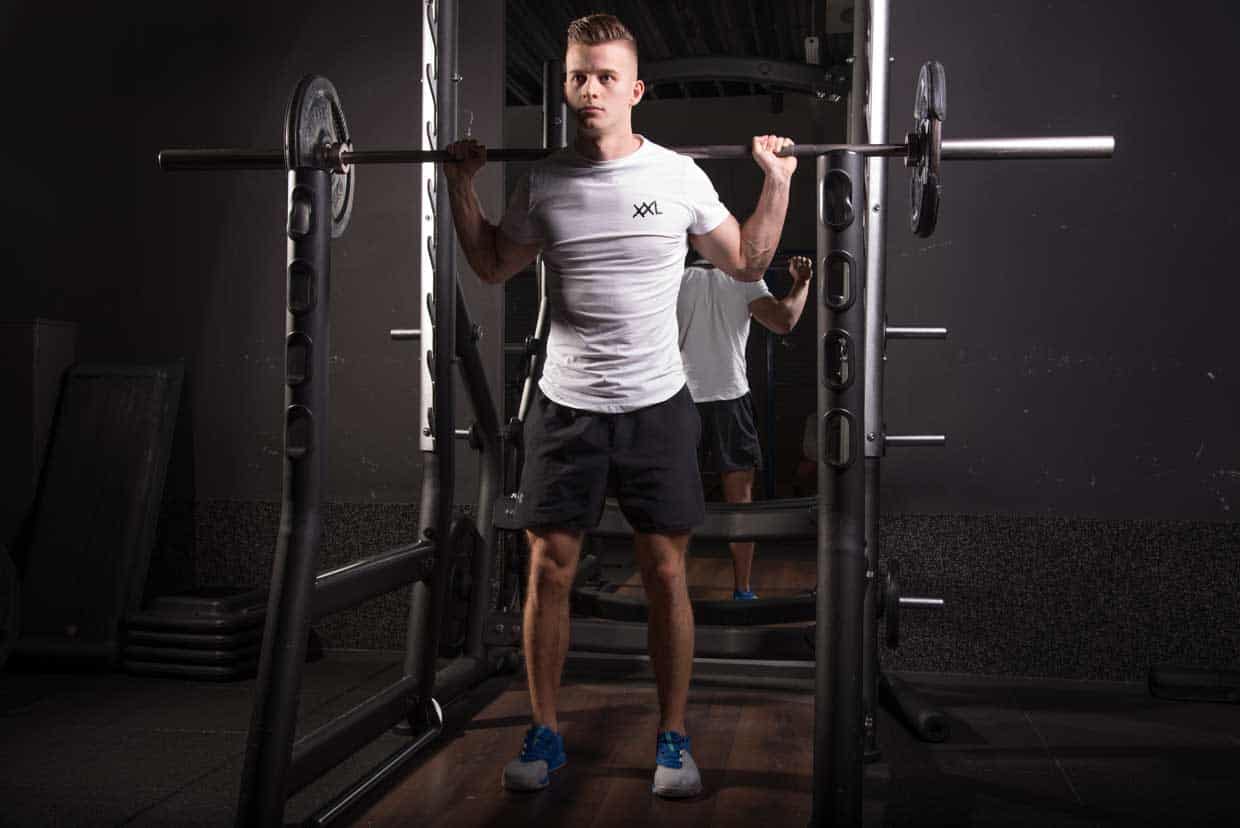 • Plaats de haken waarin de halterstang rust niet te hoog. Bij een laatste zware herhaling moet je niet volledig recht op hoeven te staan om deze terug te plaatsen.