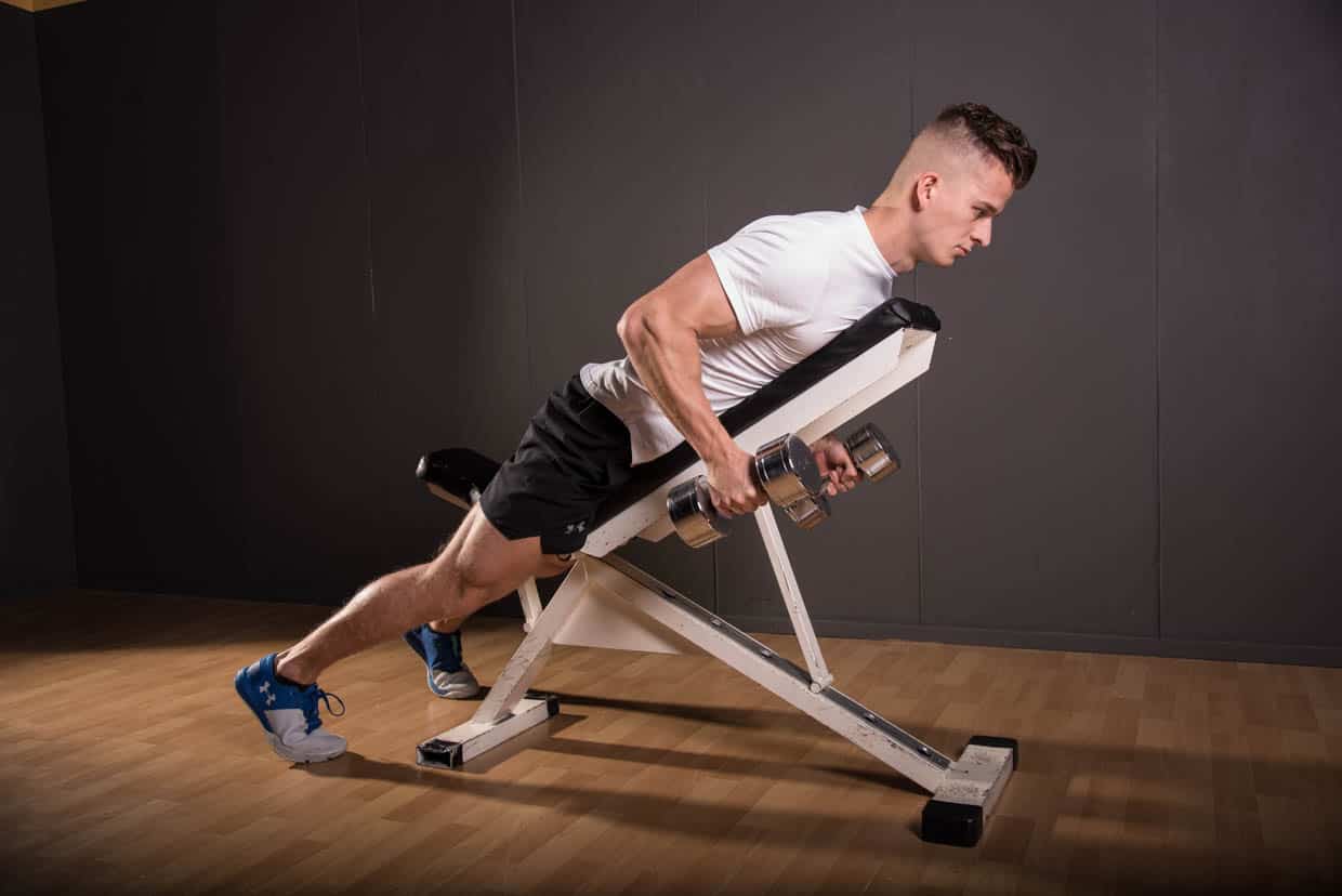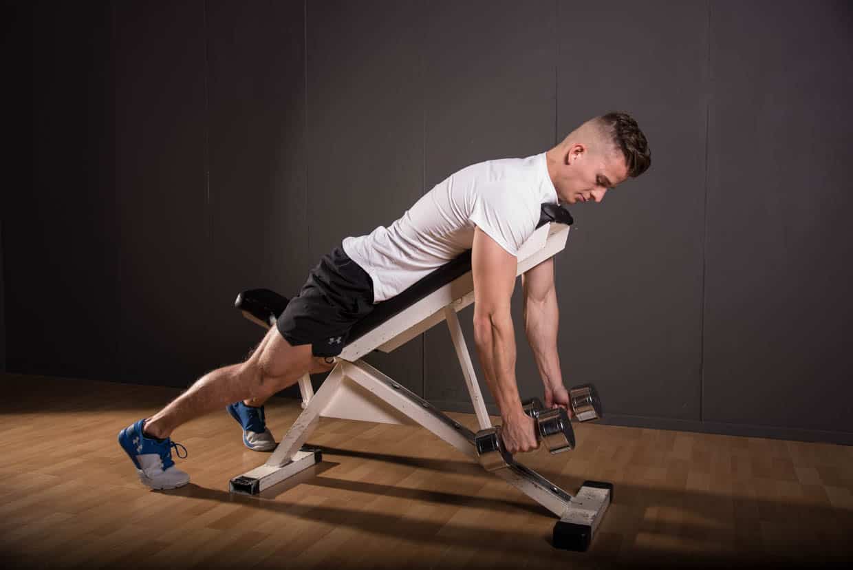 Alle zogenaamde row of roei-oefeningen, zijn voornamelijk gericht op het naar achteren trekken van de bovenarmen. Dit is een van de belangrijkste functies van de latissimus dorsi, de grote rugspier. Om deze functie met losse gewichten uit te voeren, moet het bovenlichaam in (bijna) horizontale positie gebracht worden zodat de zwaartekracht de juiste weerstand kan verzorgen. Liggen op een (schuin) bankje is een van de manieren om dit te realiseren. Voordeel of nadeel (afhankelijk van doel) ten opzichte van voorovergebogen varianten is het ontbreken van spanning op de onderrug.