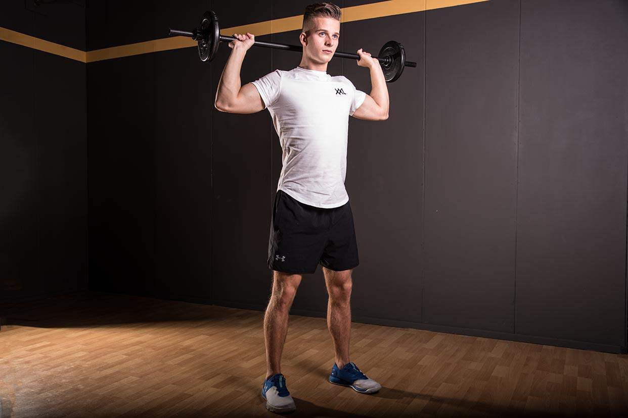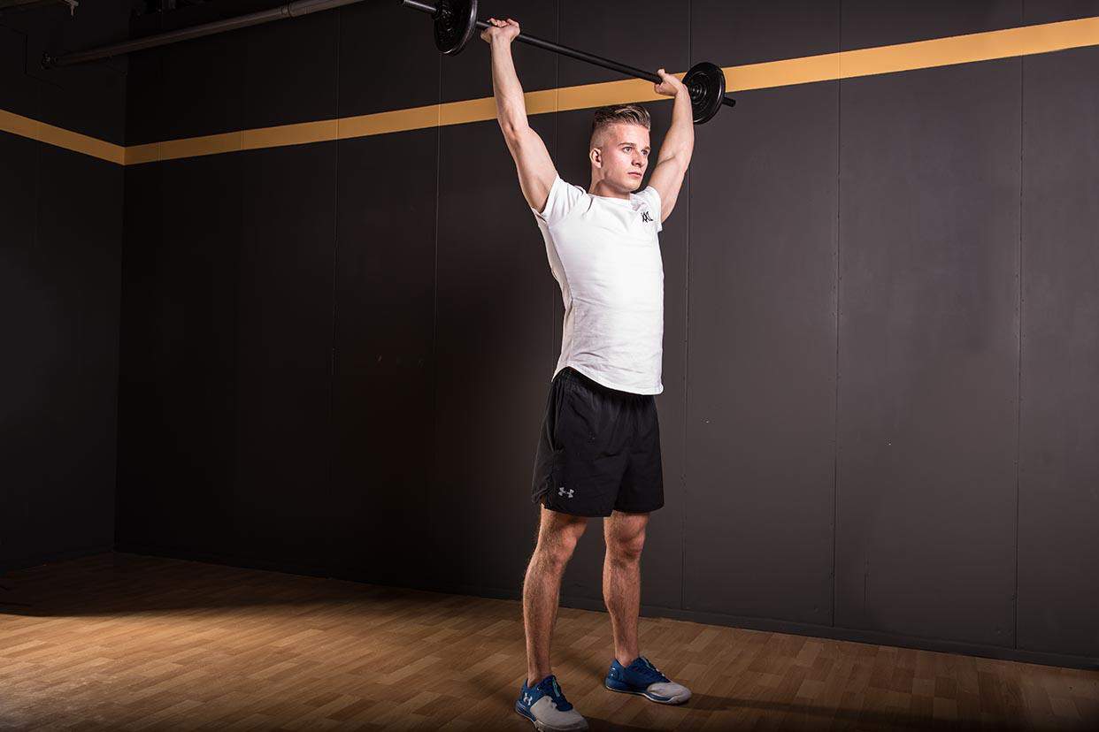 Barbell behind neck press techniek