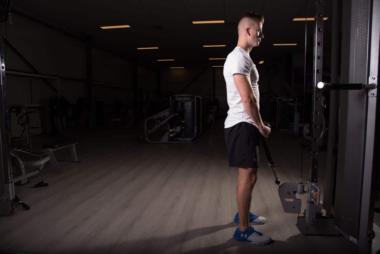 Voorbereiding cable upright row met touw