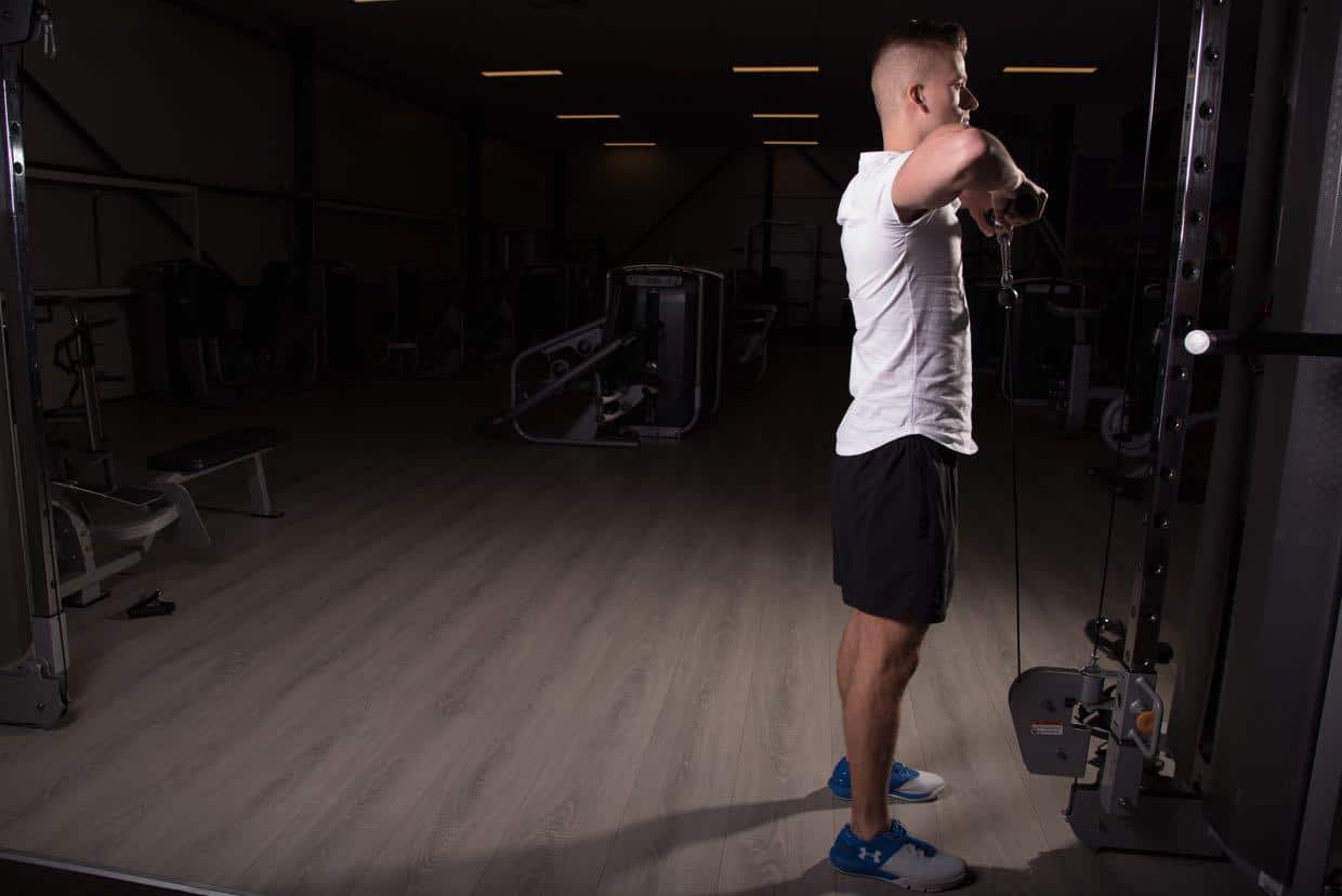 Gebruik dus een brede stang waarmee je de handen op schouderbreedte of wijder kunt plaatsen. Mocht deze niet aanwezig zijn, kies dan voor een van onderstaande alternatieven in plaats van de uitvoering op het kabelrek.