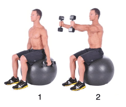 Dumbell front raise on stability ball
