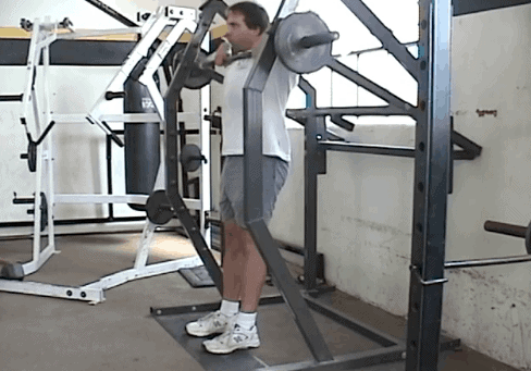 Door de stang achter de rug te houden, wordt de nadruk van de schouderspier verschoven naar de middelste en achterste kop. Voor de trapezius geldt dat deze de schouderbladen recht omhoog moet trekken waardoor vooral de bovenkant van de trapezius wordt ingezet.