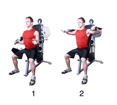 In deze variant worden de lateral raises uitgevoerd, gebruik makend van een toestel waarbij meer op de bovenarmen geconcentreerd kan worden.