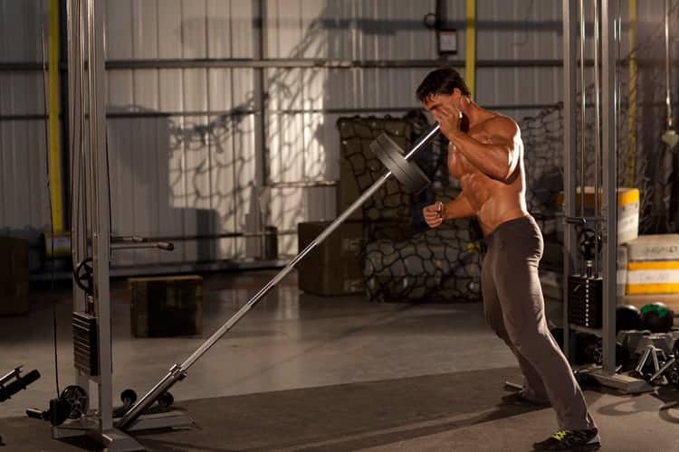 - Zak door benen zoals in een deadlift en pak de stang met beide handen op.