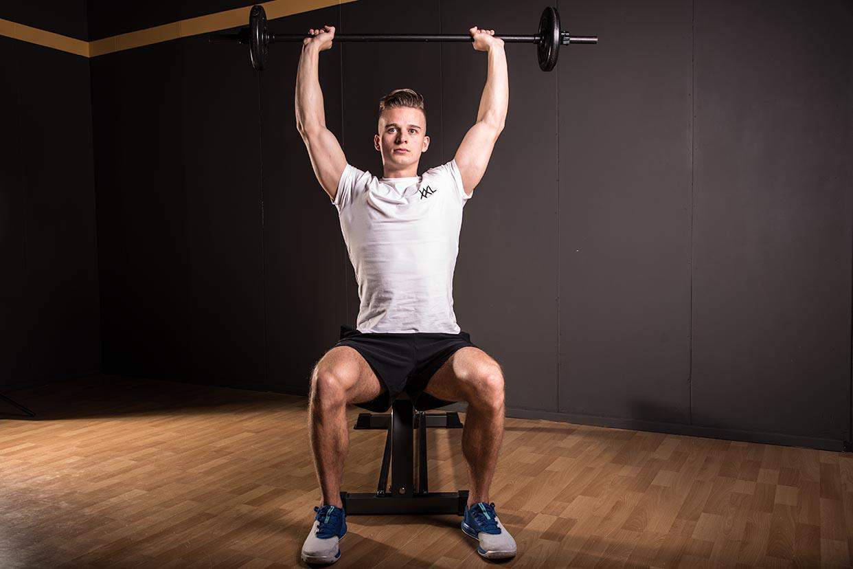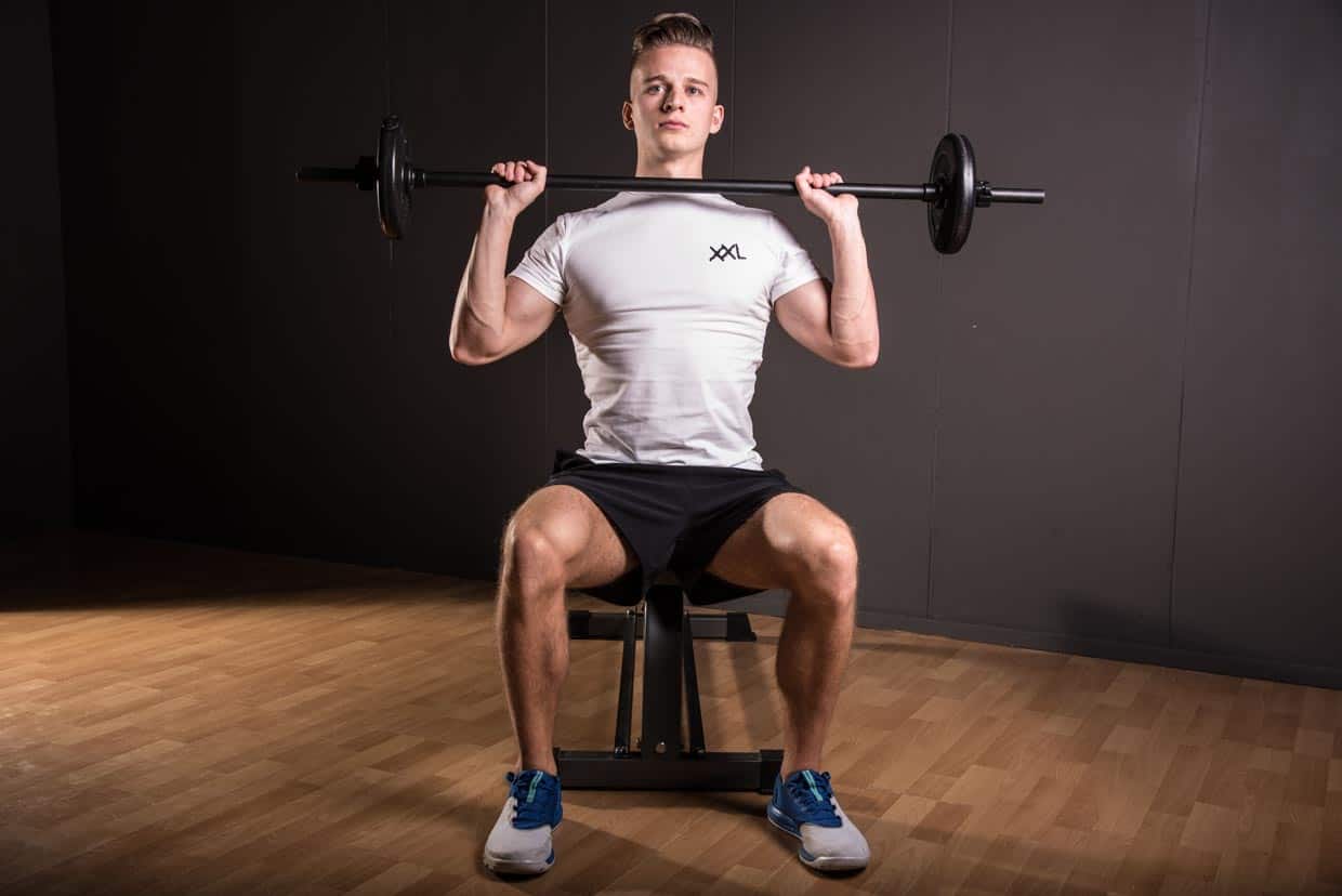 Seated barbell shoulder press techniek