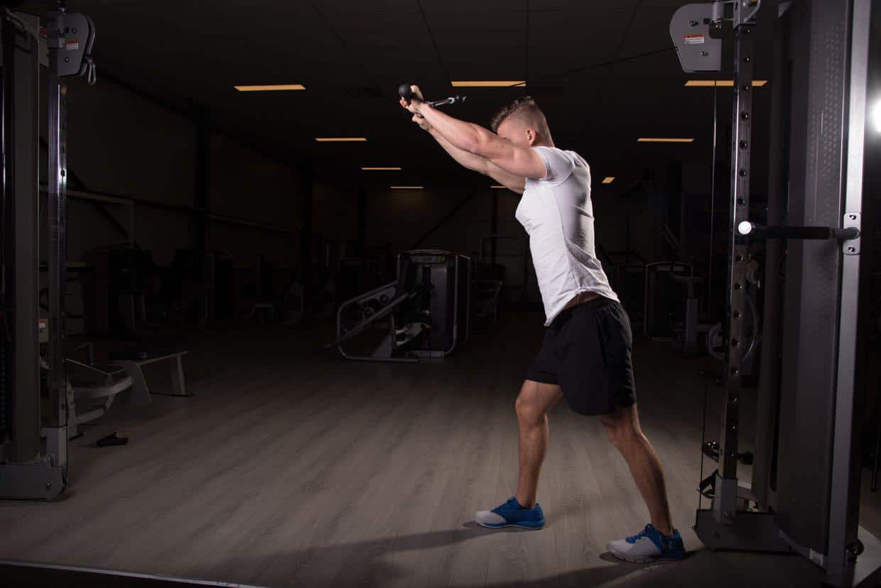 Met deze oefening train je de triceps door de armen te strekken met kabels als weerstand. Het gebruik van de kabels zorgt voor een gelijkmatigere weerstand gedurende de gehele bewegingsbaan dan varianten op deze oefening met losse gewichten. Daardoor is de oefening makkelijker en veiliger voor beginners. Er zijn meerdere oefeningen met kabels die voor de triceps kunnen worden uitgevoerd. In deze ‘forward’ uitvoering is er een grotere rek op de lange kop van de triceps dan bij bijvoorbeeld de cable triceps pushdown.