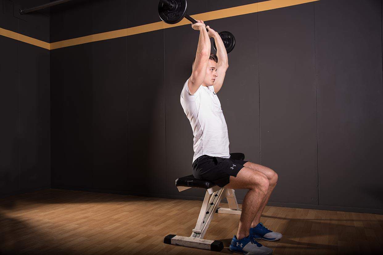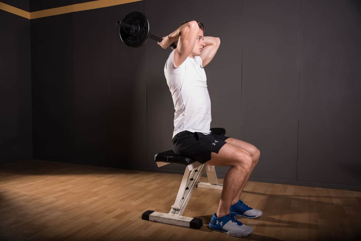 Barbell Seated Overhead Triceps Extension techniek