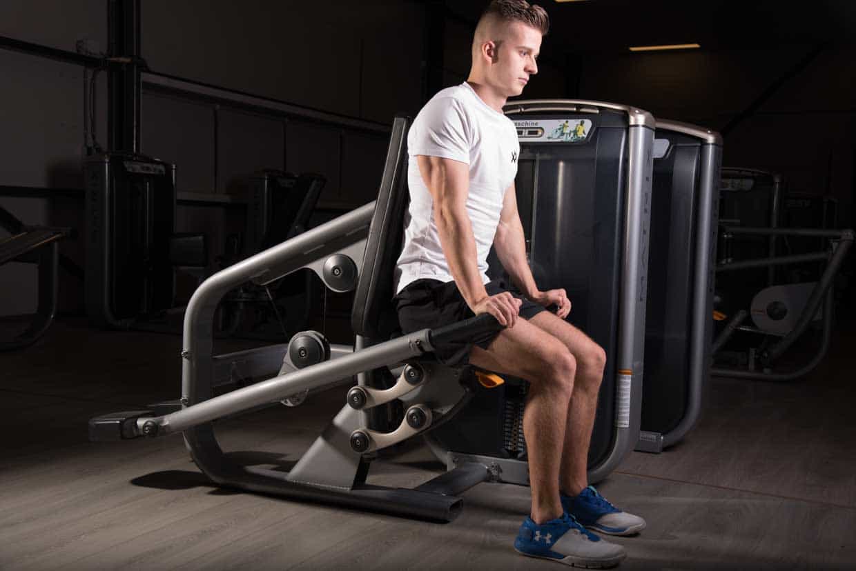 De hoek van de machine zorgt er normaliter voor dat je tegen de rugleuning geduwd wordt in plaats van jezelf uit de stoel te drukken bij hoge weerstand. Vandaar dat deze meestal een beetje naar voren gekanteld is. In sommige gevallen moet een gordel voorkomen dat je jezelf omhoog duwt.