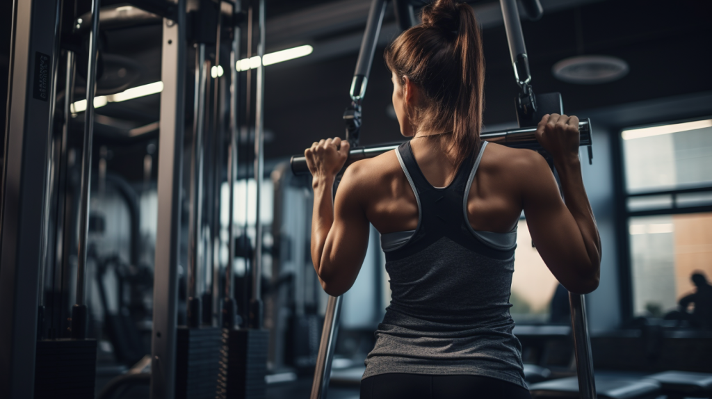 Wil je de latissimus dorsi goed trainen, dan kun je het beste je borst naar de stang toe trekken. Op die manier benader je de natuurlijke beweging het beste en zal je grote rugspier maximaal aangespant worden. Als je je nek naar de stang brengt zal de nadruk veel meer op je trapezius liggen, nog los van het feit dat je de schouders in een veel gevoeliger positie brengt.