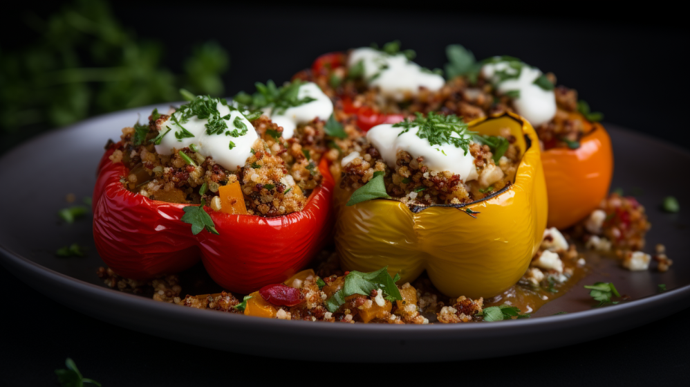 Gevulde paprika’s worden veel gegeten in de Balkan. Vaak worden ze gevuld met rijst en gehakt. Ik maak er een eigen versie van en maakte ze met Quinoa, verse groenten en feta. Het lijkt veel werk maar met de juiste voorbereiding, valt het reuze mee en je hebt niet veel ingrediënten nodig. Het meeste werk zit hem in het maken van de vulling en je kunt de verse groenten ook vervangen voor een zakje groentenmix want het gemak is ook belangrijk! Dit gerecht is een goede afwisseling voor als je (eens) geen vlees wilt eten en niet te vergeten heel gezond! Ik gebruik Fajita kruiden (voor tortillas) omdat de kruiden er meteen een lekkere pittige smaak aan geven. Dit is optioneel, je kunt ook alleen verse kruiden gebruiken en peper en zout. Zolang je maar zorgt dat de vulling niet flauw van smaak is. De gevulde paprika’s eet je het lekkerst tezamen met een (zelfgemaakte) tomatensaus. Klik hier voor het recept van de tomatensaus!