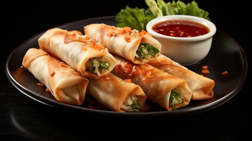 - Snij de loempia door tweeën en serveer op een mooi bord met dipsaus.