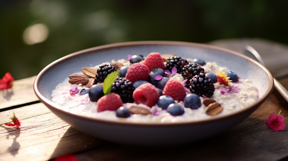 Havermout is zeker niet saai als ontbijt want je kunt er genoeg mee variëren. Ik maak de havermout het liefst met amandelmelk. Je kunt amandelmelk zelf maken of je koopt het bij de supermarkt of natuurwinkel. Let wel op dat je de variant zonder suiker koopt. Amandelmelk kun je ook vervangen door sojamelk, rijstemelk, water of een combinatie ervan. Met fruit zoals banaan, zwarte bessen en noten maak je de lekkerste combinaties. Door er vanille protiëne blend bij te voegen krijgt de havermout al een heerlijke smaak. Gebruik een theelepel kaneel als finishing touch!